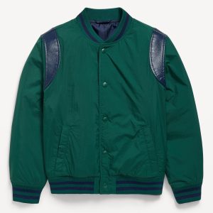 Water-Resistant Vintage-Style Bomber Jacket for Boys