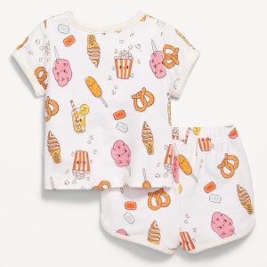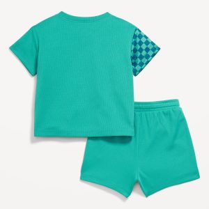 Printed French-Terry Ringer T-Shirt and Shorts Set for Baby