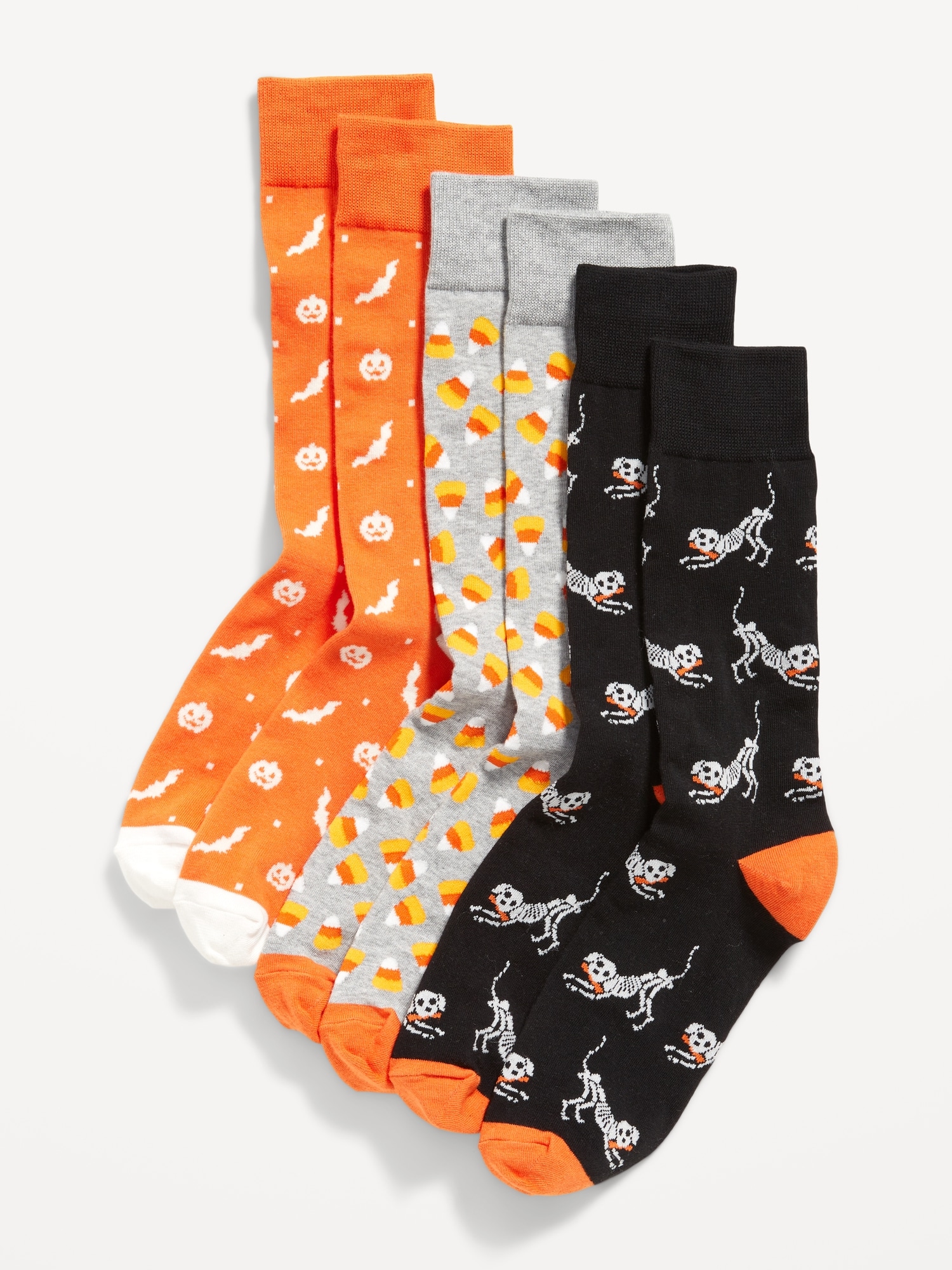 3-Pack Printed Novelty Socks for Men: seasonal print varies by pack, rib-knit cuffs, notched seams for comfort, #801633