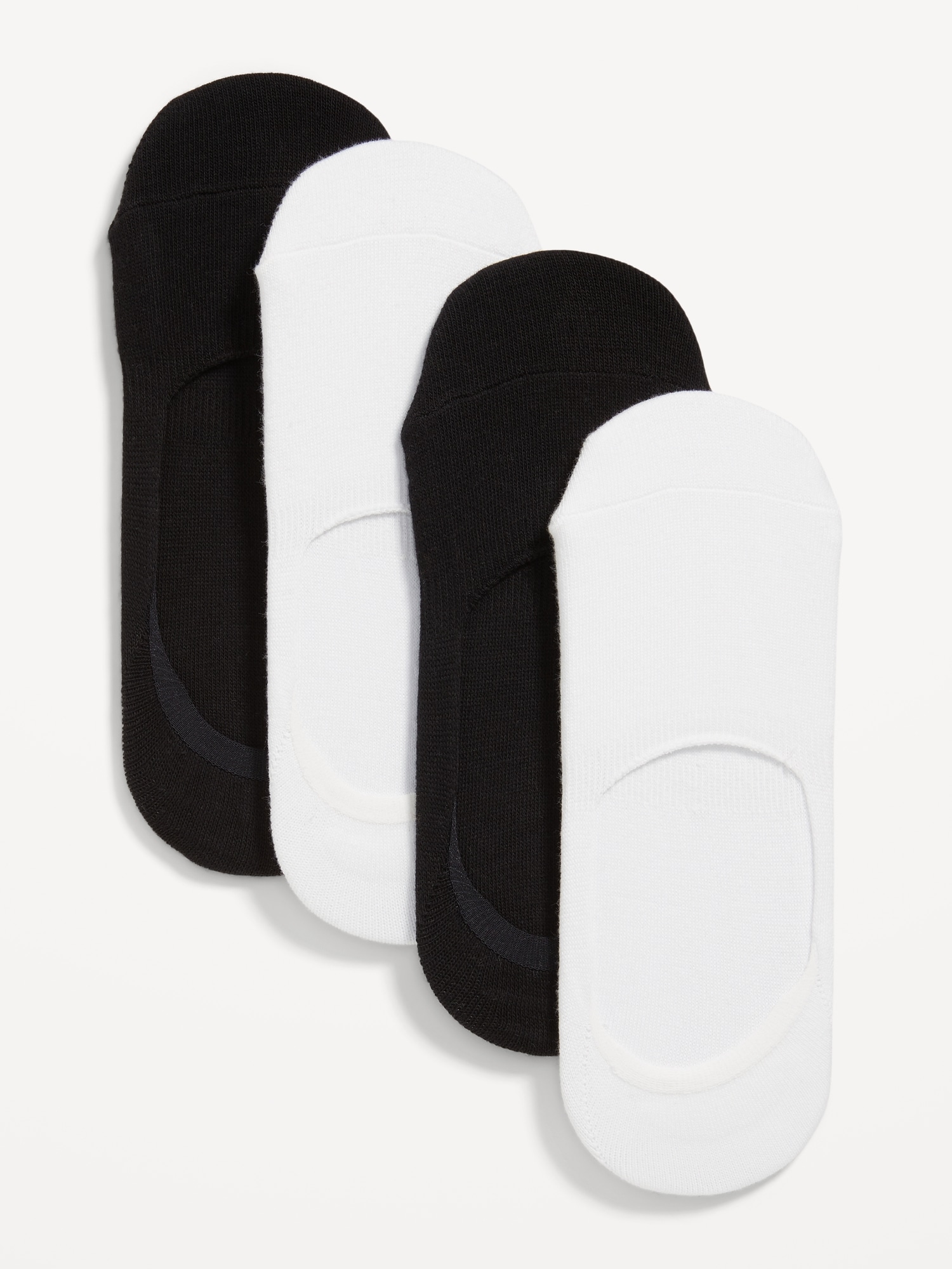 4-Pack No Show Socks: pack includes 4 pairs of socks in different colors, notched seams, elasticized openings, #419092