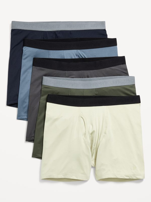 5-Pack Go-Dry Cool Performance Boxer Briefs — 5-inch inseam