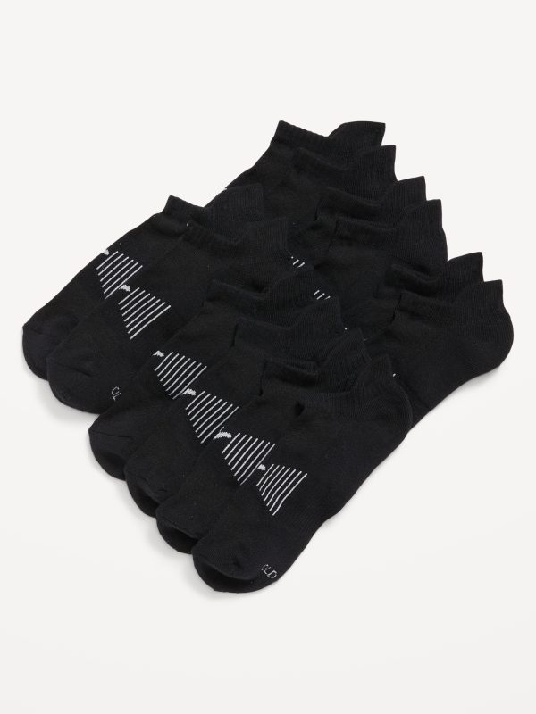 6-Pack Athletic Ankle Socks for Men: pack includes 6 pairs of performance socks, rib-knit openings, arch support, zoned cushioning, notched toe seams, go-dry wicks moisture, #685049