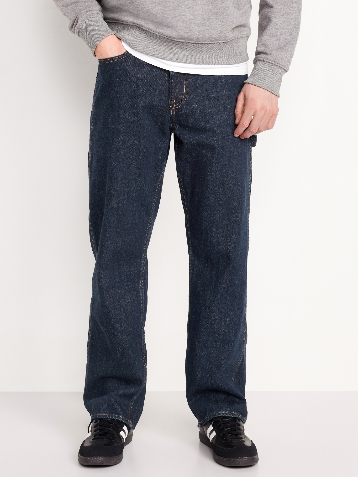 90's Baggy Carpenter Jeans: zip fly, front scoop pockets, back patch pockets, left hammer loop, whiskering and fading, #788029