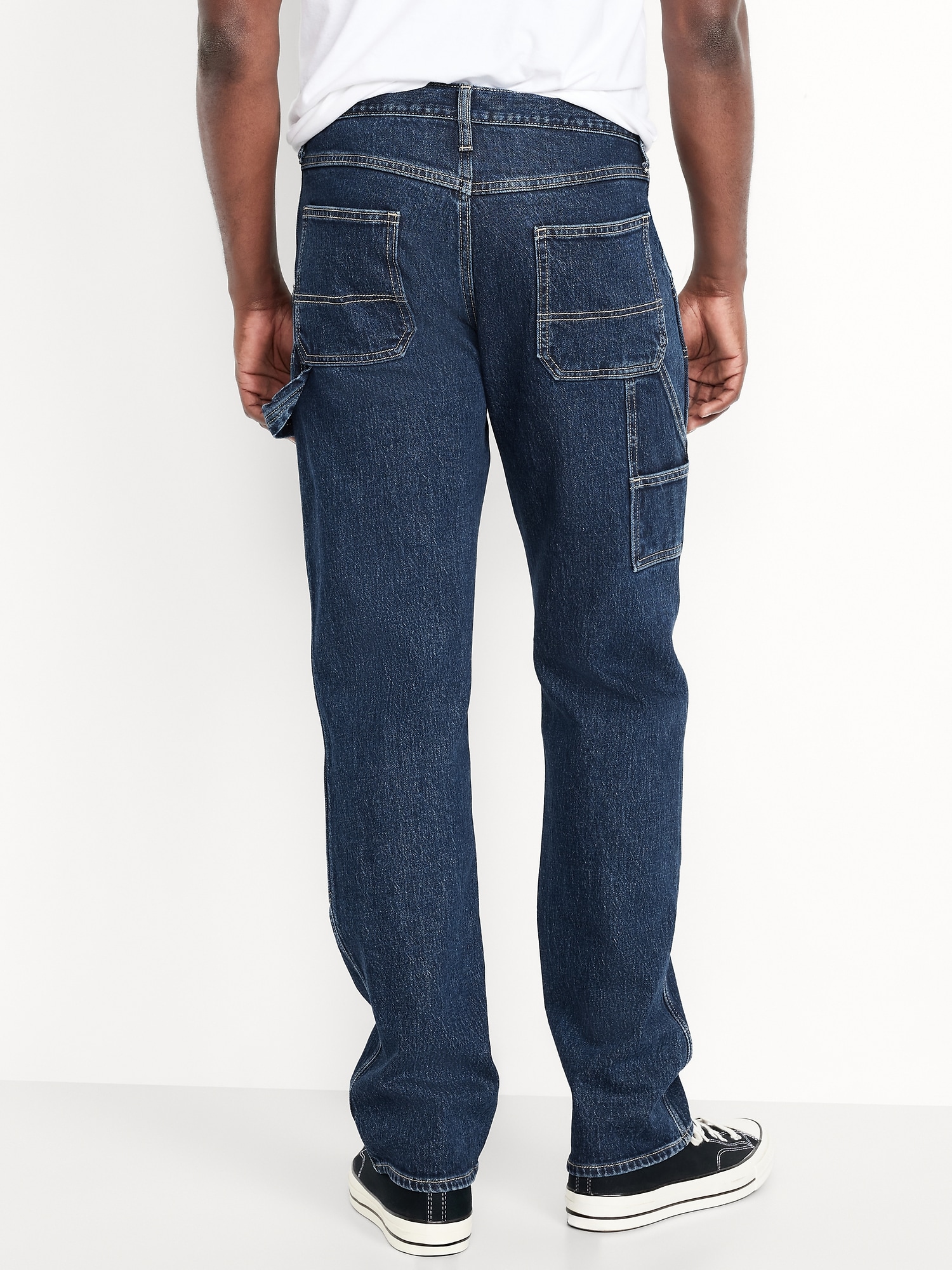 90's Straight Built-In Flex Carpenter Jeans: Relaxed through the hip and thigh, with a straight leg and vintage feel.button front, zip fly, hip pockets, back patch pockets, hammer loop, reinforced knees, #788044