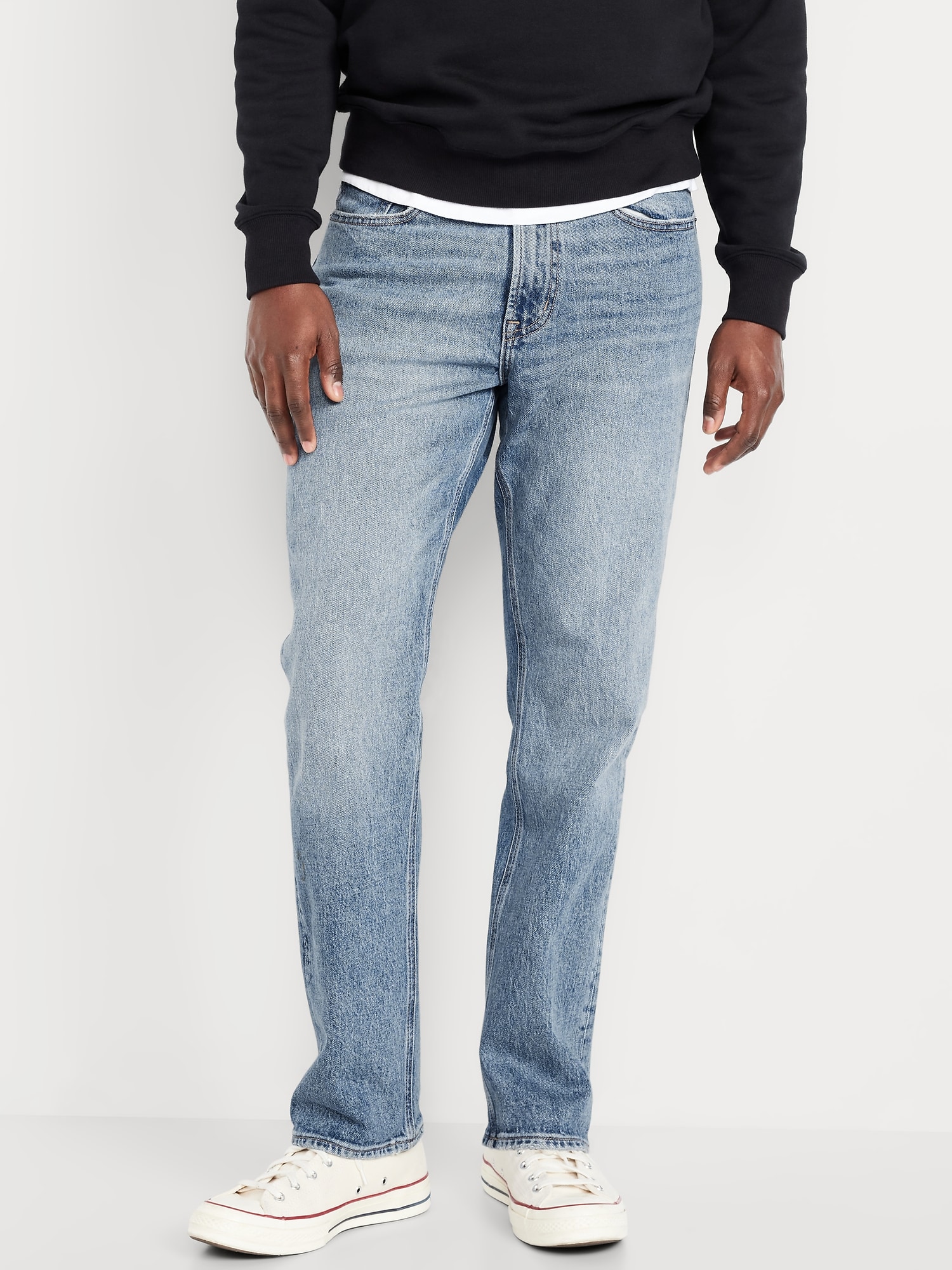 90's Straight Built-In Flex Jeans: Relaxed through the hip, with a straight leg.button front, belt loops, zip fly, whiskering and fading, front scoop pockets, back patch pockets, #788043