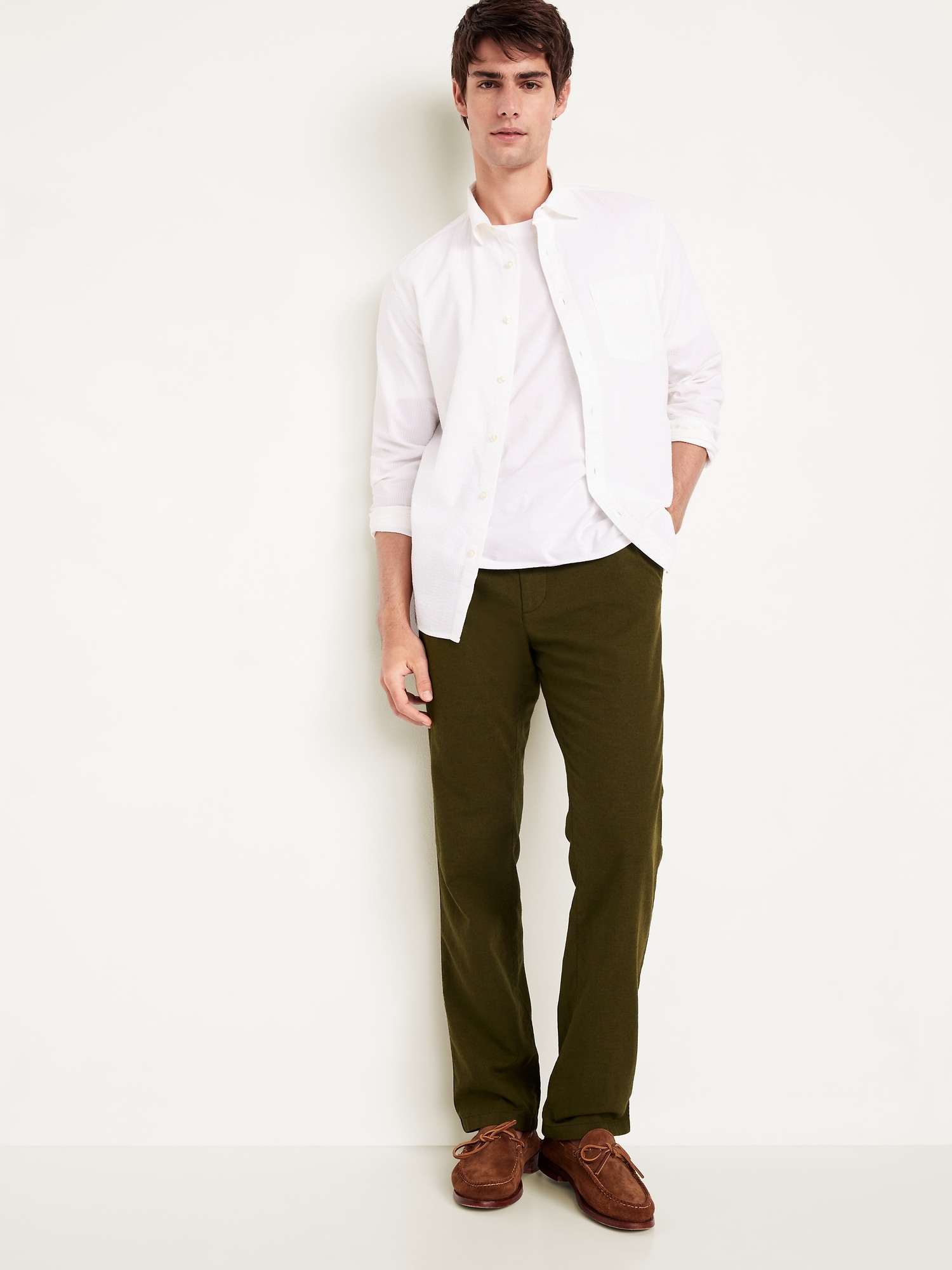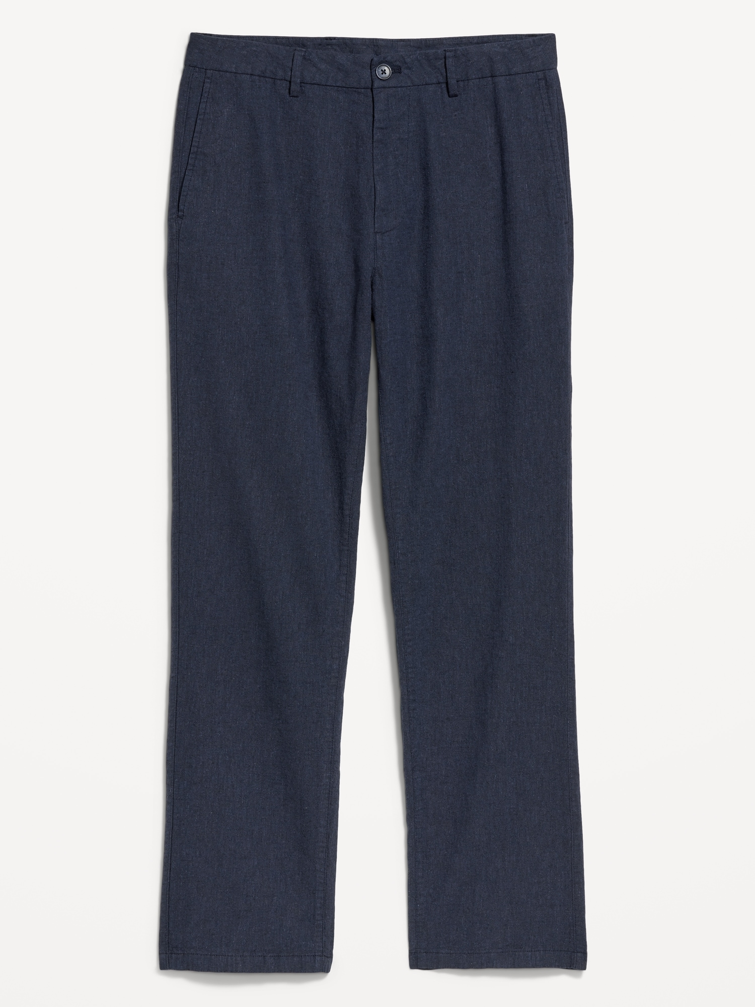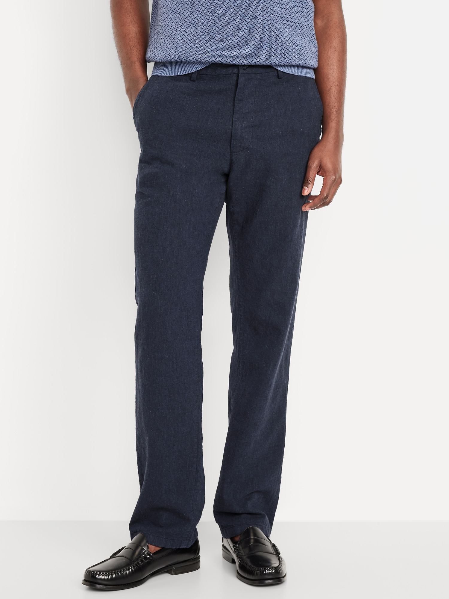 90's Straight Linen-Blend Chino Pants: button front, belt loops, zip fly, hip pockets, back welt pockets with left button, pair back to our linen-blend blazer, #751381