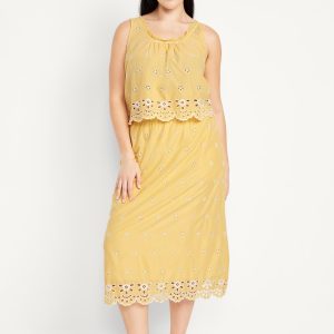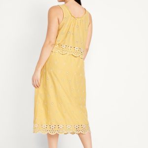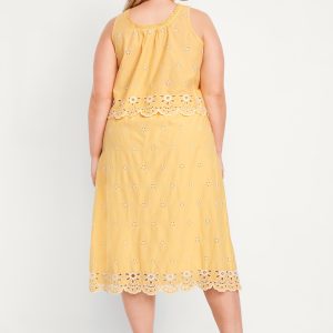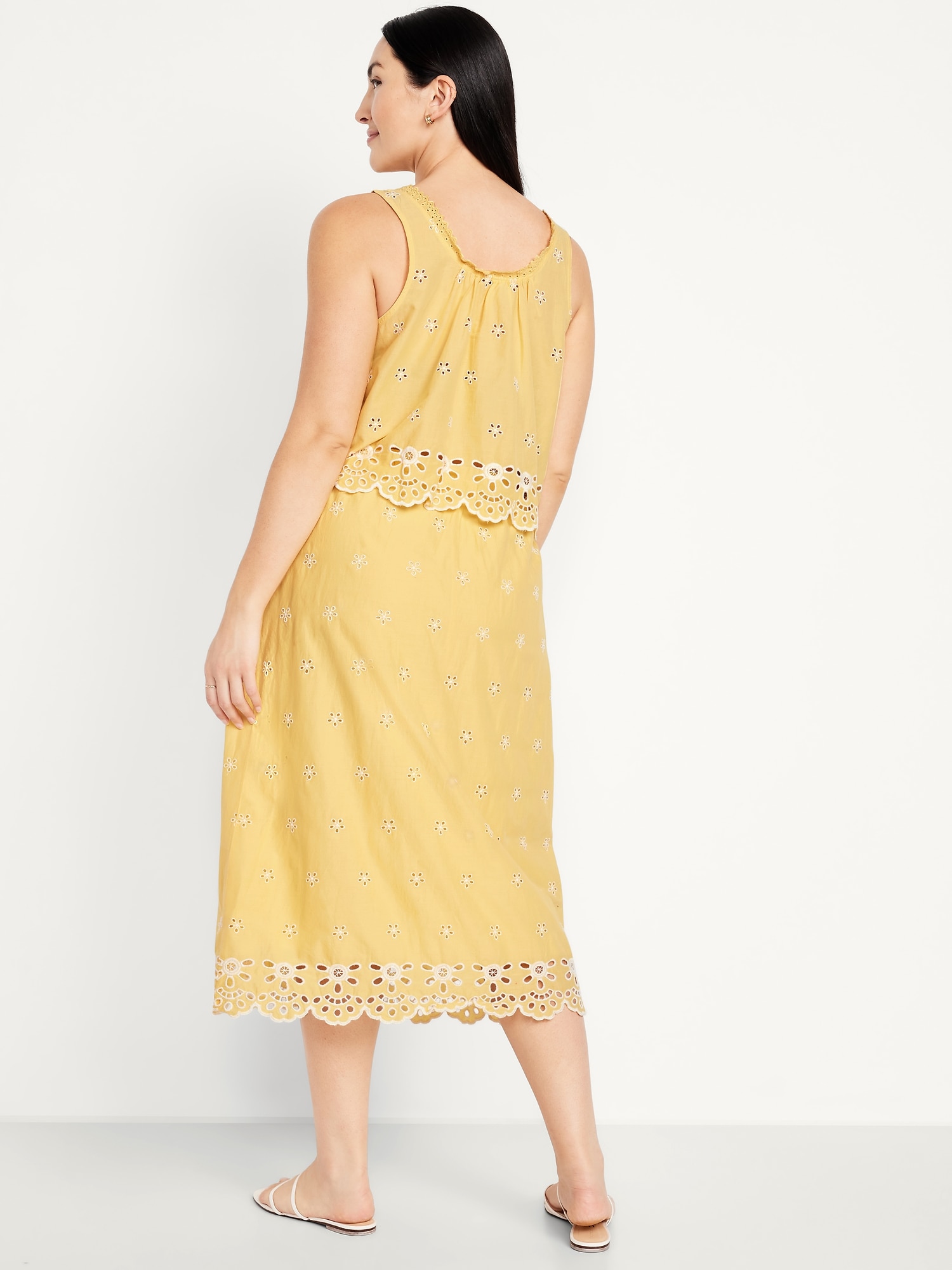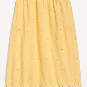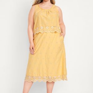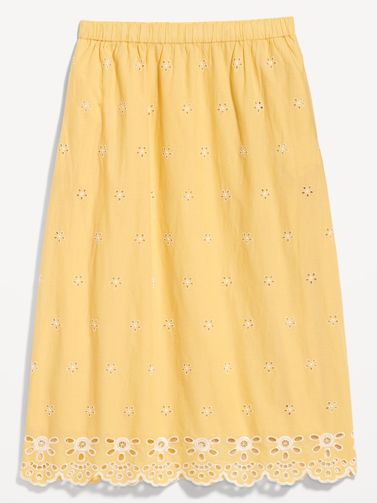 A-Line Eyelet Midi Skirt: elastic pull-on waistband, all-over embroidered detail, eyelet-scallop hem, #705284