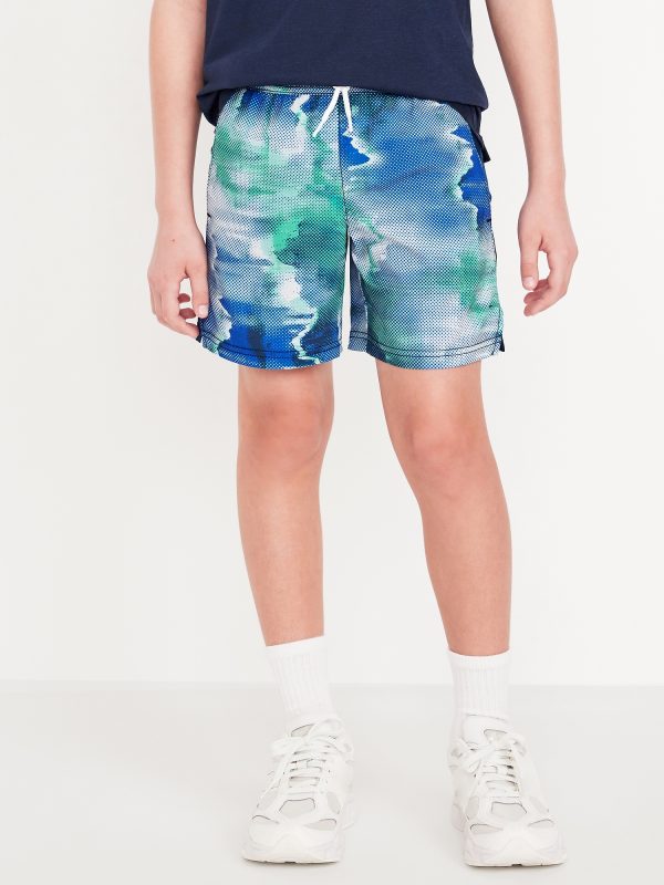 Above Knee StretchTech Performance Shorts for Boys: elasticized waistband, adjustable drawstring, diagonal on-seam pockets, single pocket at back, vented sides at hem, #695609