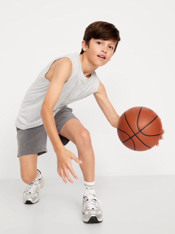 Above Knee StretchTech Shorts for Boys: elasticized waistband, interior drawstring, diagonal on-seam pockets, vented sides at hem, #695643