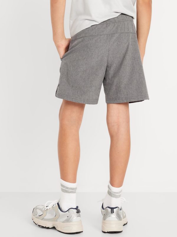 Above Knee StretchTech Shorts for Boys: elasticized waistband, interior drawstring, diagonal on-seam pockets, vented sides at hem, #695643