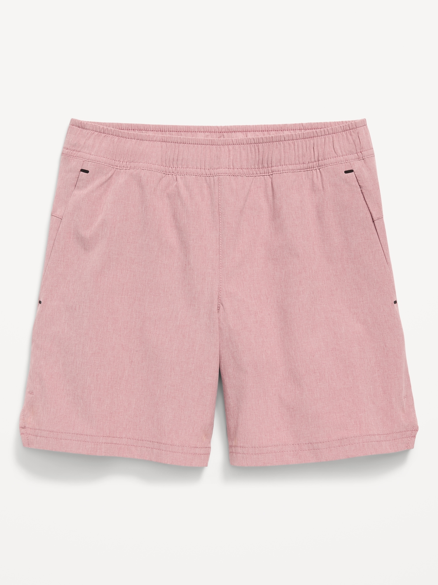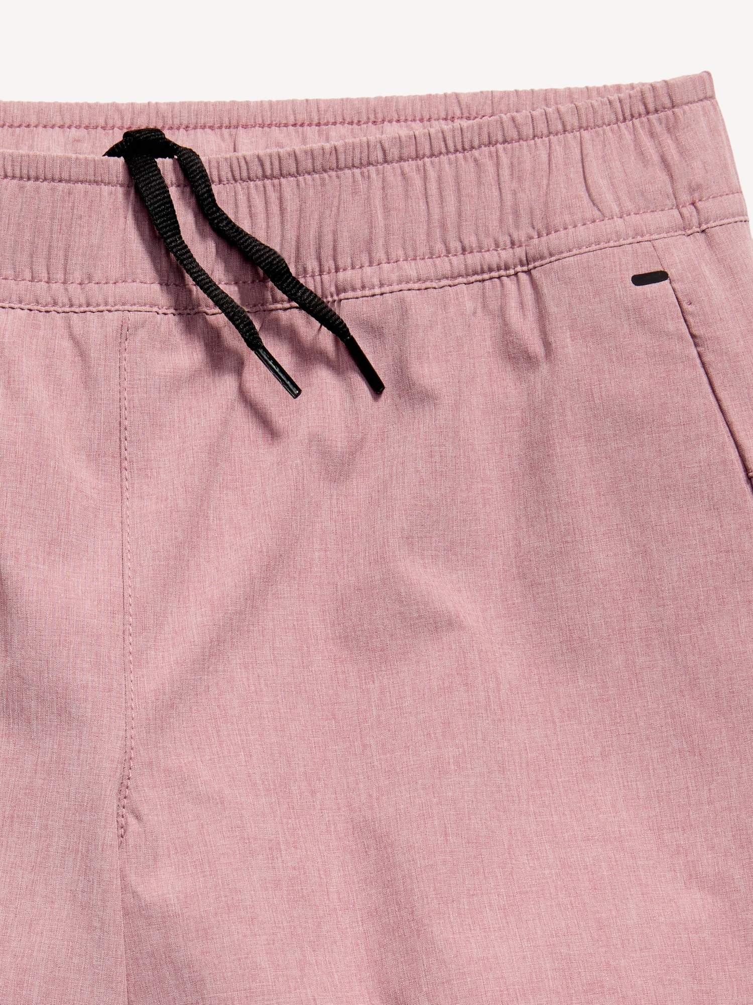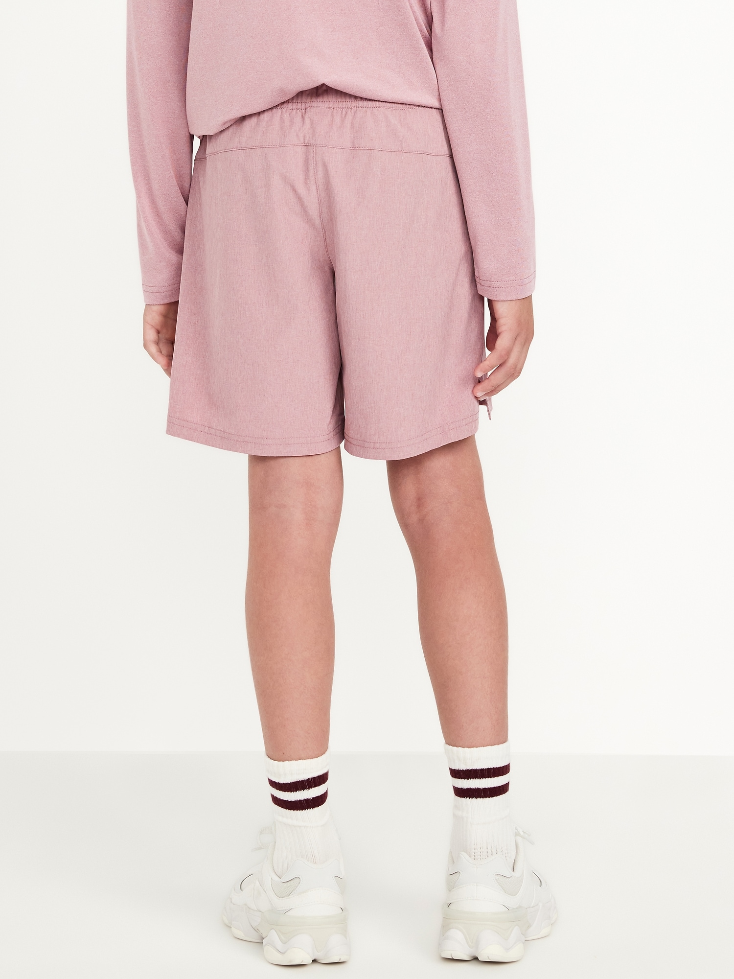 Above Knee StretchTech Shorts for Boys: elasticized waistband, interior drawstring, diagonal on-seam pockets, vented sides at hem, #695643