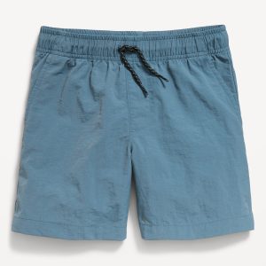 Above Knee Tech Shorts for Boys: elasticized waistband, functional drawstring, faux fly, diagonal on-seam pockets, single welt pocket at back, easy pull-on style, #860738