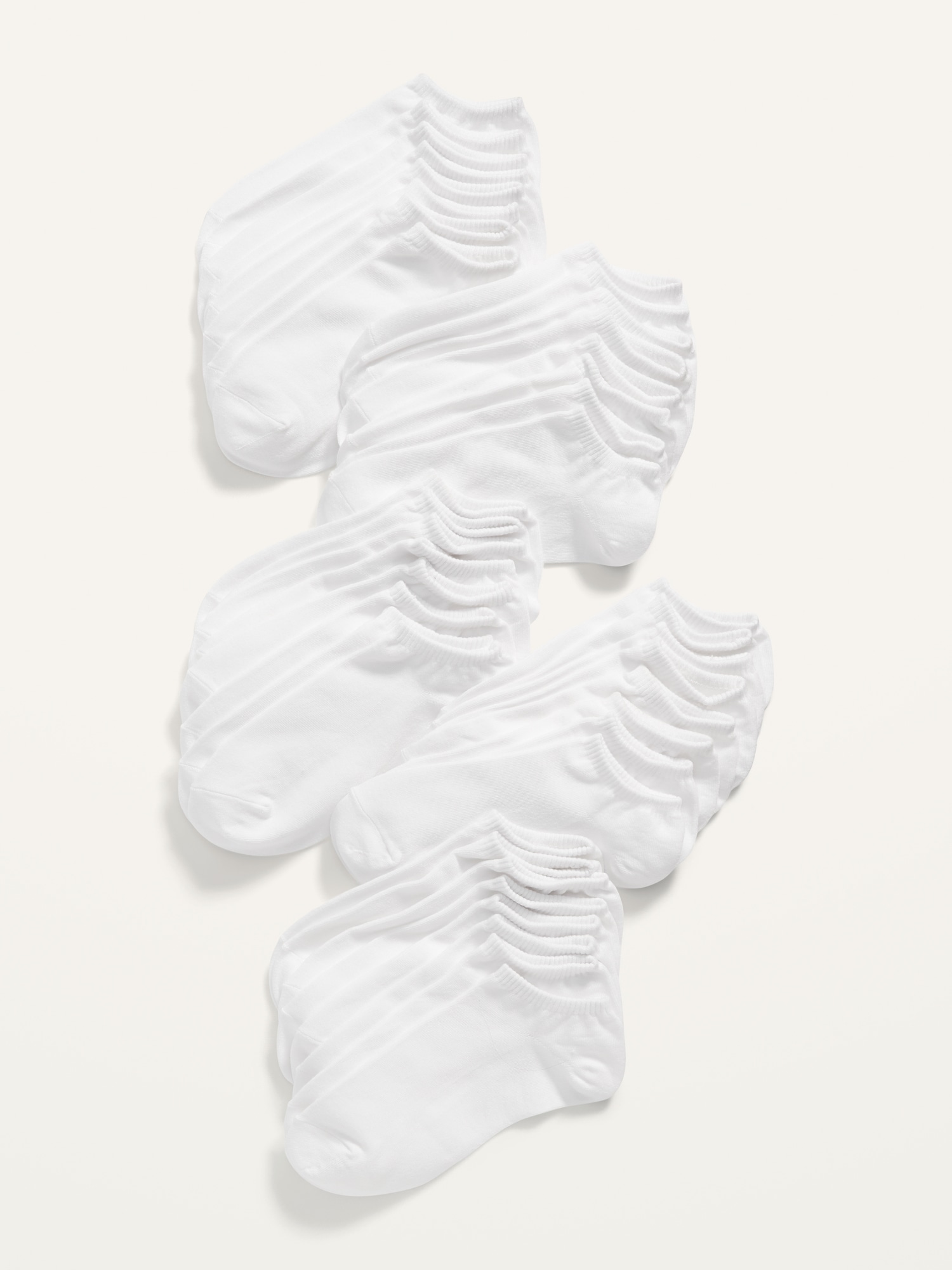 Ankle Socks 20-Pack For Women: Pack includes 20 pairs of ankle socks for women., Rib-knit, ankle-length openings., Soft-knit cotton blend, with comfortable stretch., Notched toe seams for added comfort., #678437