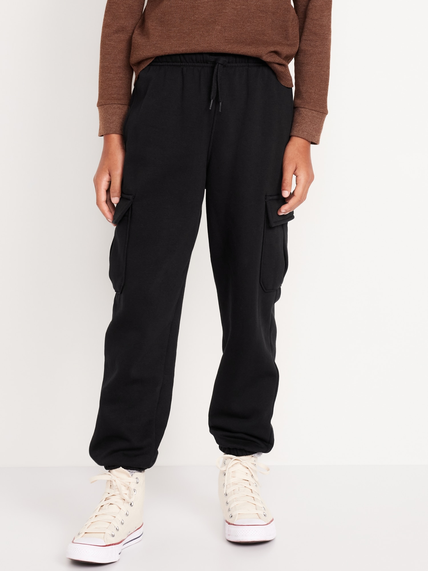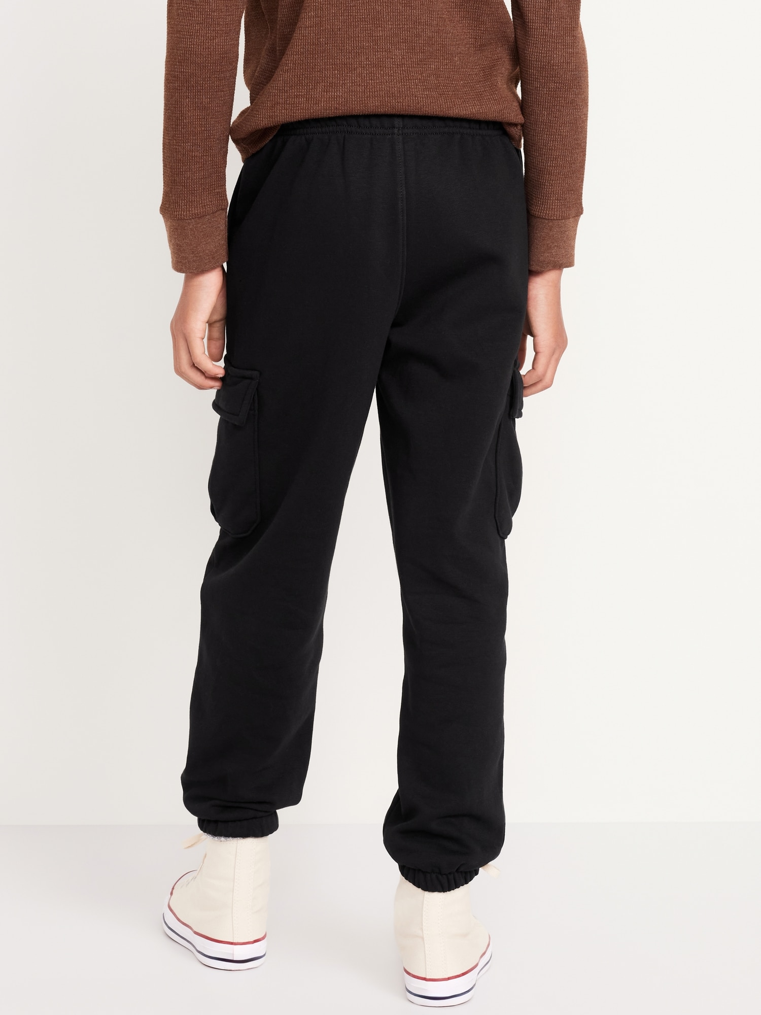 Baggy Cargo Jogger Sweatpants for Boys: elasticized waist, functional drawstring, on-seam welt pockets, snap-button cargo pockets, cinched leg cuffs, #564944