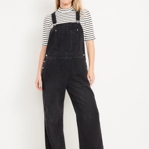 Baggy Wide-Leg Jean Overalls: The oversized jean overall of your teenage dreams.adjustable buckled straps, square neck, v-back, bib pocket, buttons at hip, front utility pockets, back patch pockets, #846922