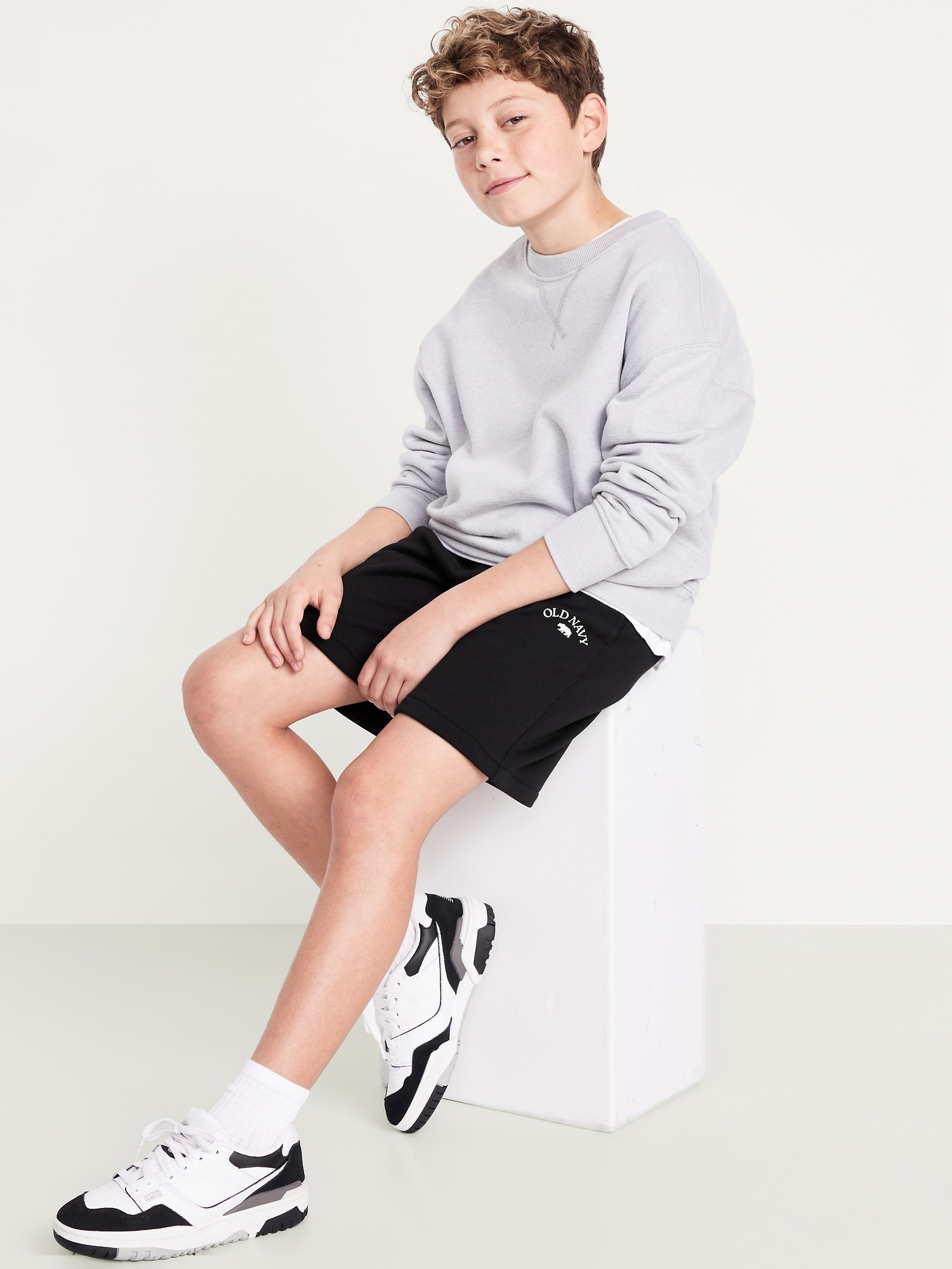 Below Knee Fleece Jogger Shorts for Boys: elasticized waistband, interior drawstring, on-seam welt pockets, #685948