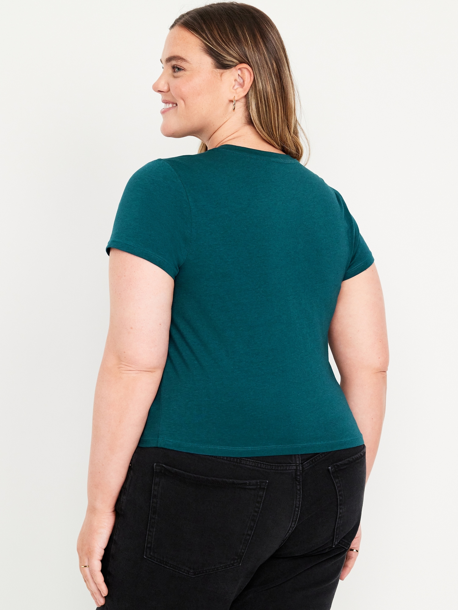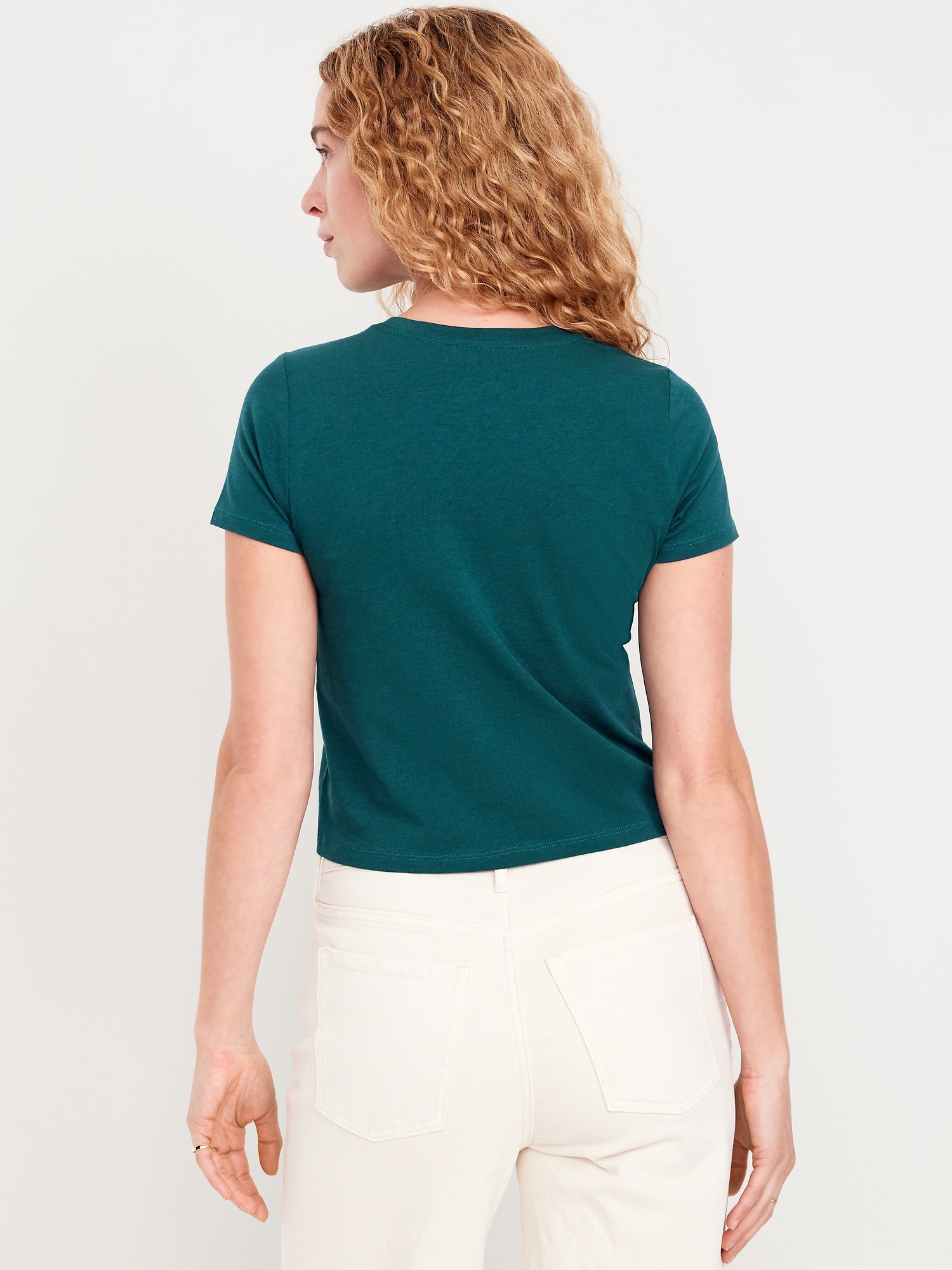 Bestee Crop T-Shirt: A classic, slim fit that’s instantly polished.rib-knit crew neck, short sleeves, #537378