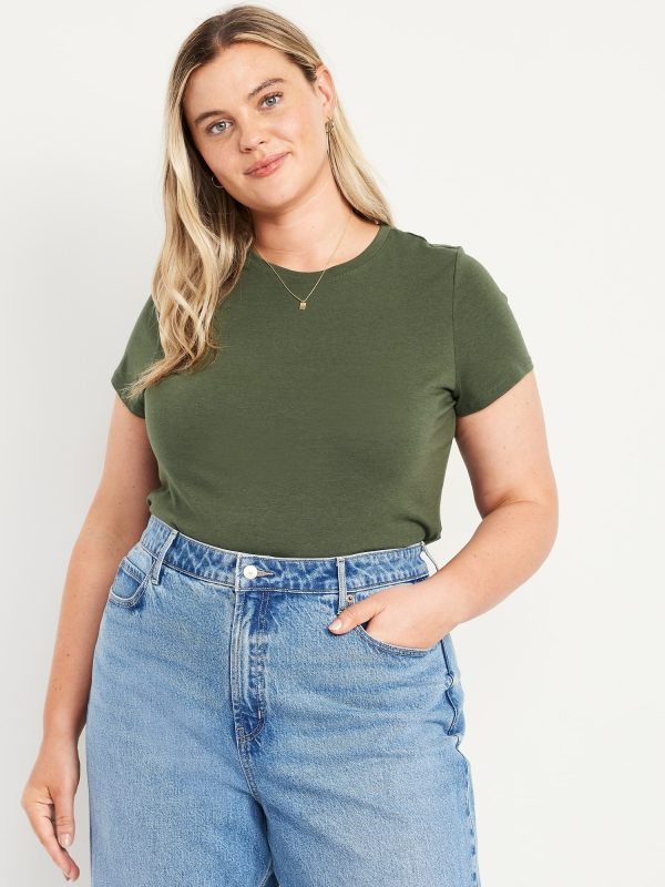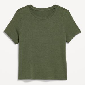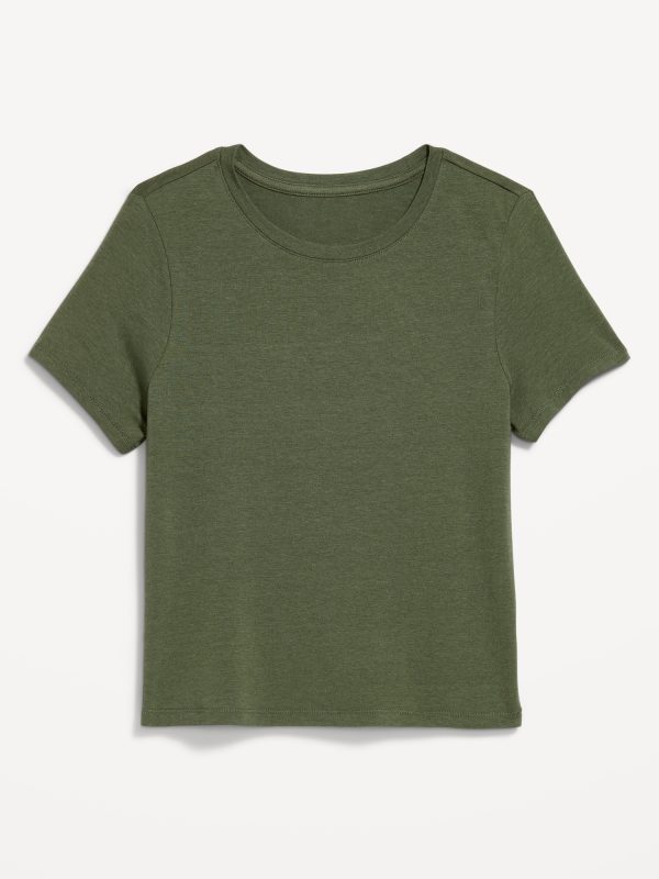 Bestee Crop T-Shirt: A classic, slim fit that’s instantly polished.rib-knit crew neck, short sleeves, #537378