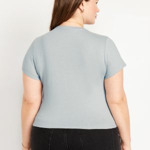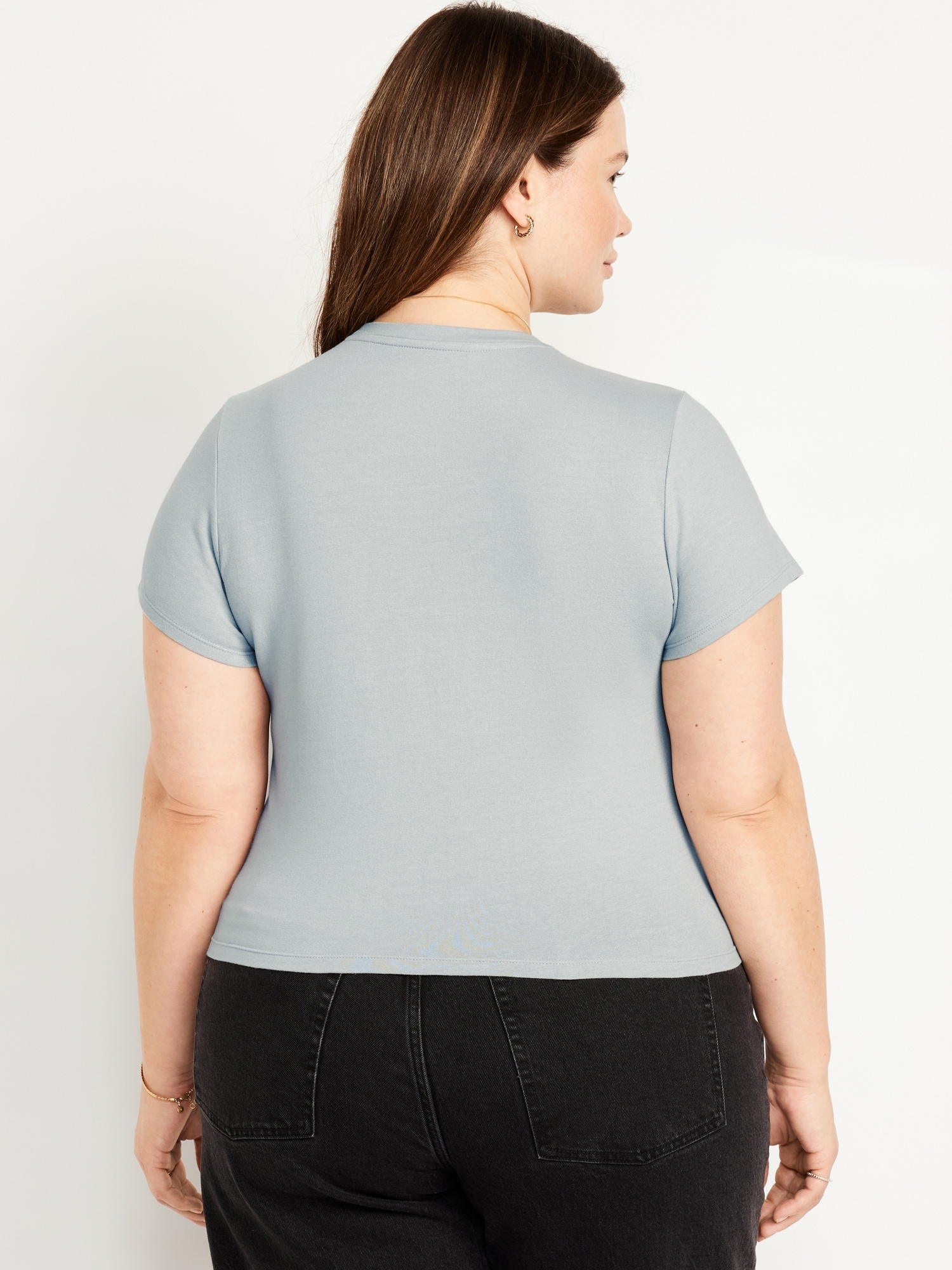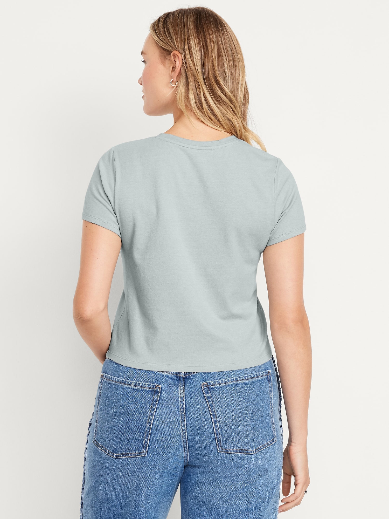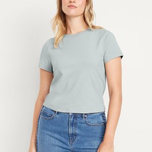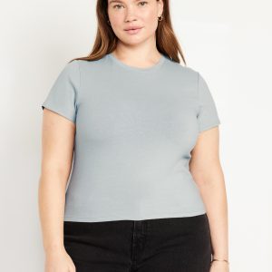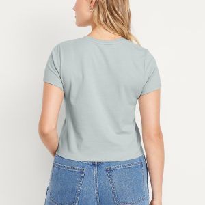 Bestee Crop T-Shirt: A classic, slim fit that’s instantly polished.rib-knit crew neck, short sleeves, #537378