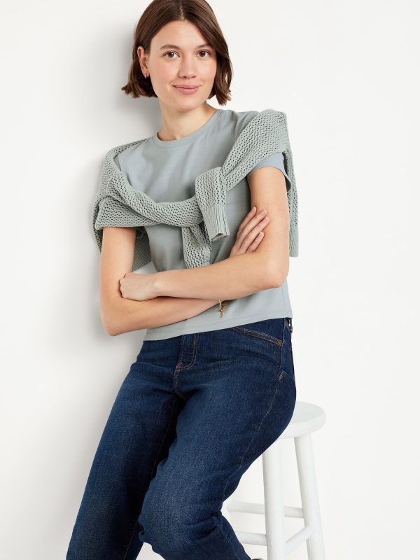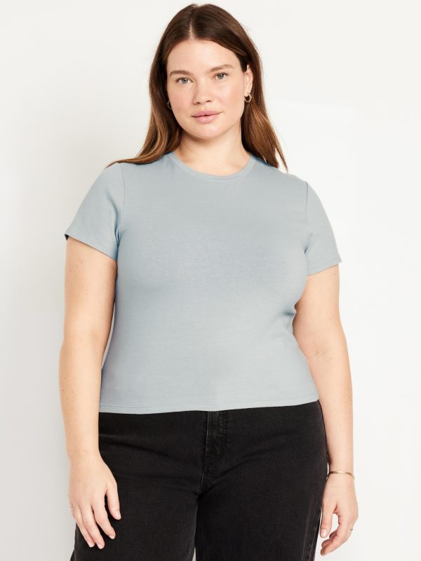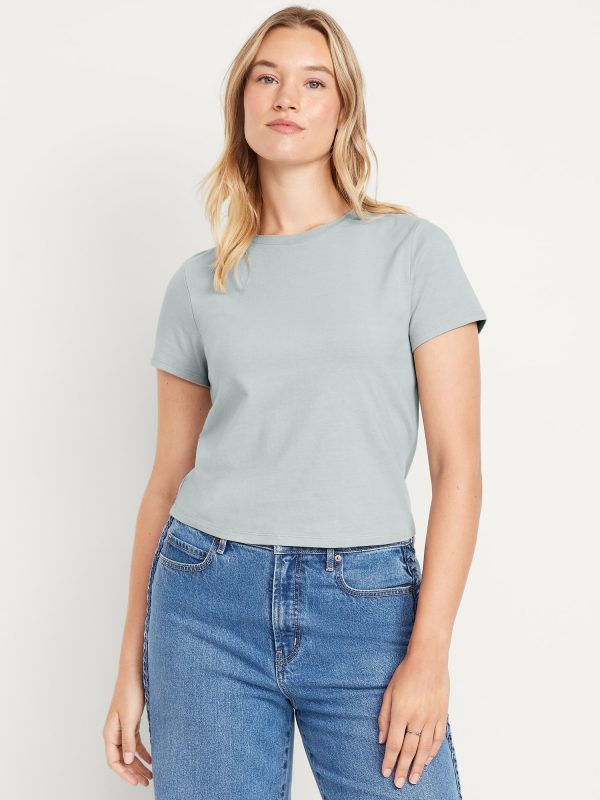 Bestee Crop T-Shirt: A classic, slim fit that’s instantly polished.rib-knit crew neck, short sleeves, #537378