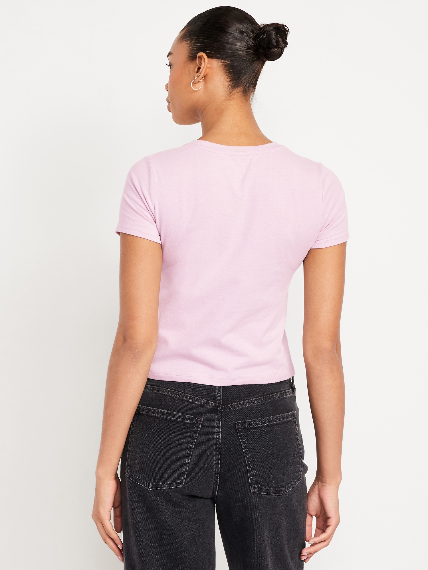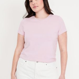 Bestee Crop T-Shirt: A classic, slim fit that’s instantly polished.rib-knit crew neck, short sleeves, #537378