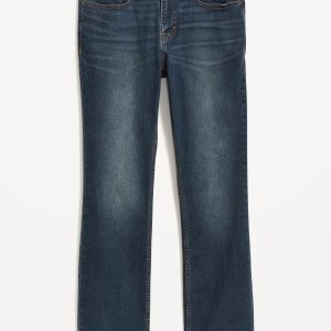 Boot-Cut Built-In Flex Jeans: Relaxed through the hip, wide below the knee.button front, whiskering and fading, zip fly, front scoop pockets, back patch pockets, #564925