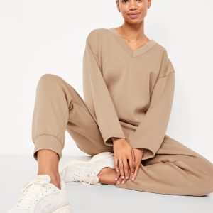 Bounce Fleece Cocoon Sweatshirt: Featuring Bounce Fleece. A smooth, cooling finish that feels good and looks chic everywhere you go.v-neck, long sleeves, pullover style, breathable, #805760
