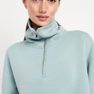 Bounce Fleece Half-Zip Pullover Sweatshirt: Featuring Bounce Fleece. A smooth, cooling finish that feels good and looks chic everywhere you go.half-zip collar, drop-shoulder sleeves, on-seam pockets, pull-over style, breathable, #583079
