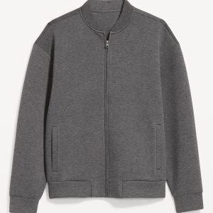 Bounce Fleece Oversized Bomber Jacket: banded collar, long drop-shoulder sleeves, full-zip front, vertical welt pockets, #787948