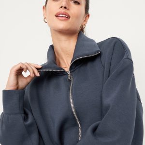 Bounce Fleece Zip Jacket: Featuring Bounce Fleece. A smooth, cooling finish that feels good and looks chic everywhere you go.mock neck, long drop-shoulder sleeves, on-seam pockets, full-zip front, breathable, #805759