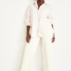 Boyfriend Button-Down Jean Tunic: spread collar, long sleeves with buttoned cuffs, patch chest pocket, full-button front, #800071
