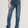 Durable medium-wash denim, with comfortable stretch and contrast topstitching.