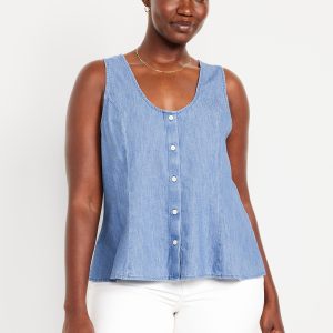 Button-Down Crepe Tank Top: scoop neck, full-button front, princess seams, #804419
