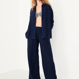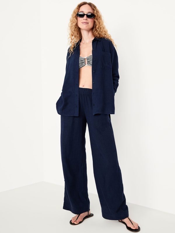 Extra High-Waisted Linen-Blend Taylor Wide-Leg Trouser Pants