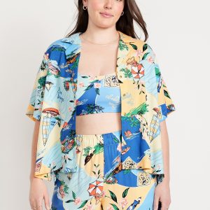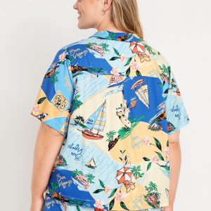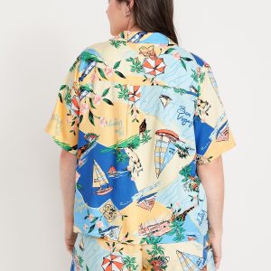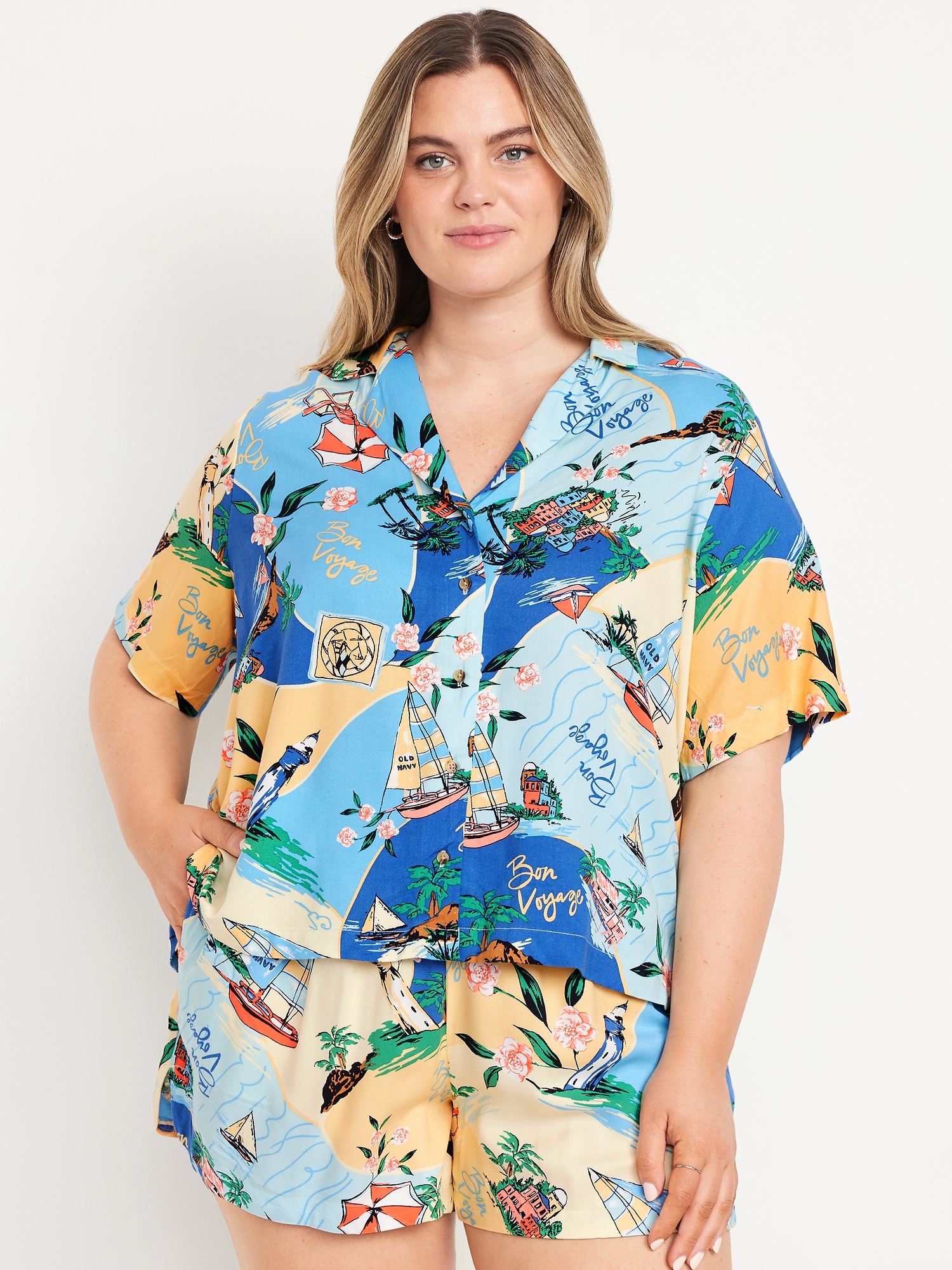 Button-Down Playa Shirt: Drapey, laid-back and ready for the breeze.spread collar, short sleeves, full-button front, seamed back yoke, #704203