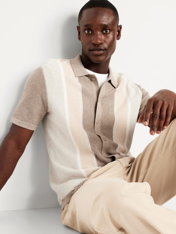 Button-Down Striped Polo: spread collar, short sleeves, buttoned placket, pullover style, #802042