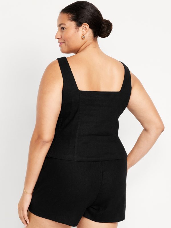 Button-Front Linen-Blend Vest: sweetheart neckline, wide straps, five-button front, smocked side panels, princess seams, #704063