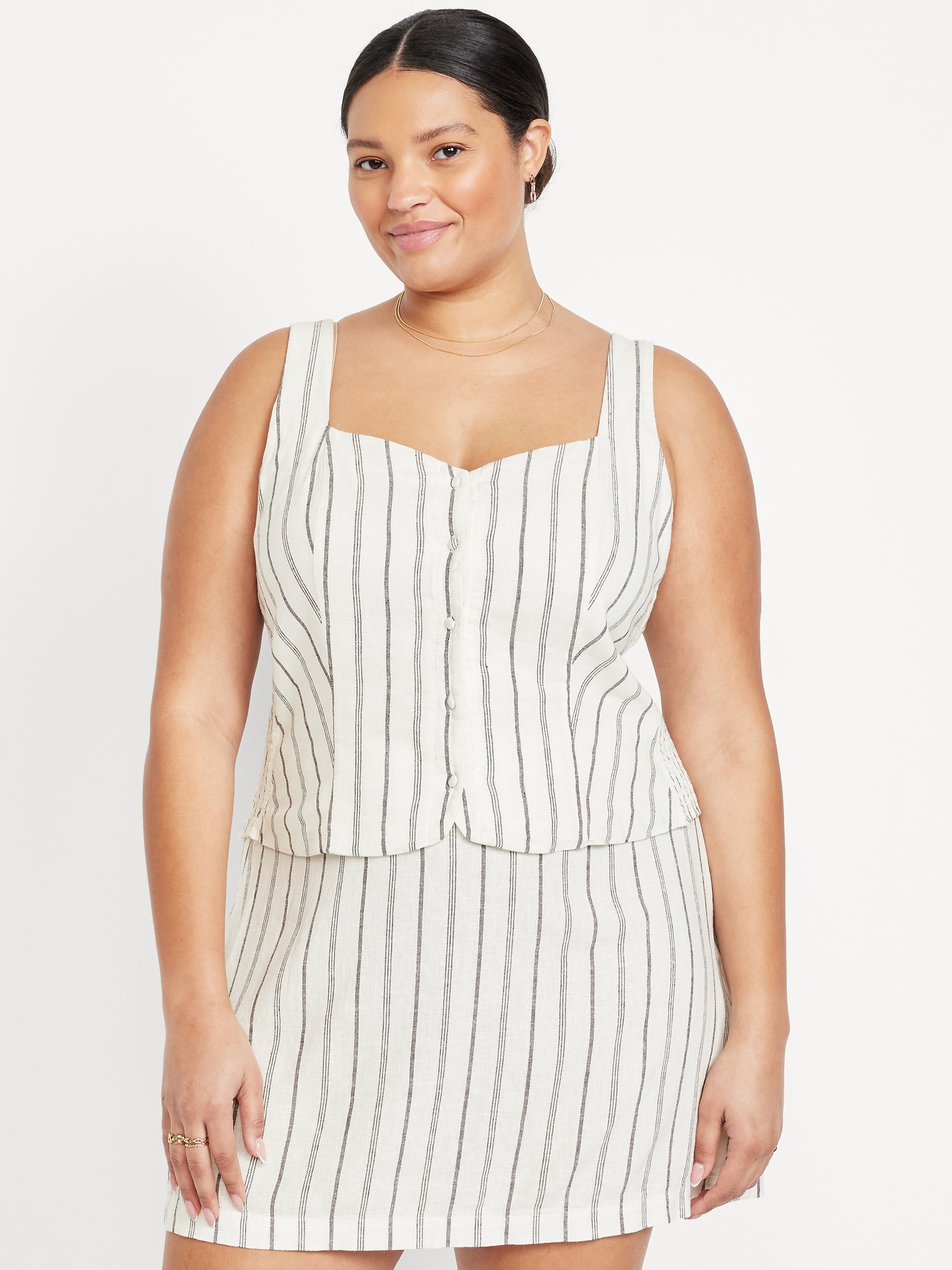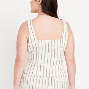 Button-Front Linen-Blend Vest: sweetheart neckline, wide straps, five-button front, smocked side panels, princess seams, #704063