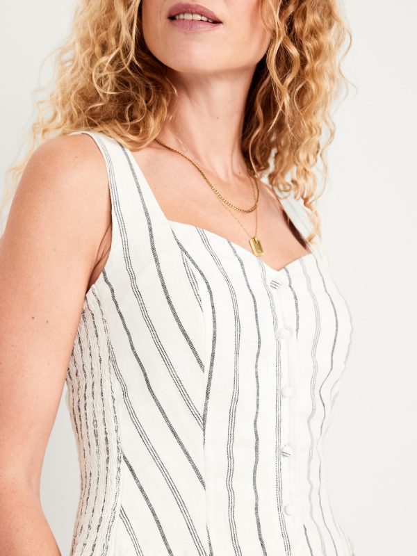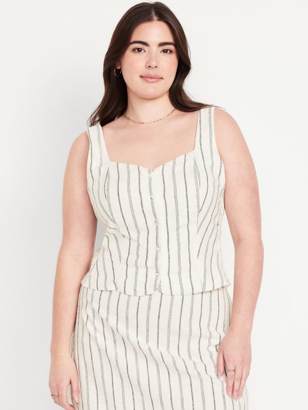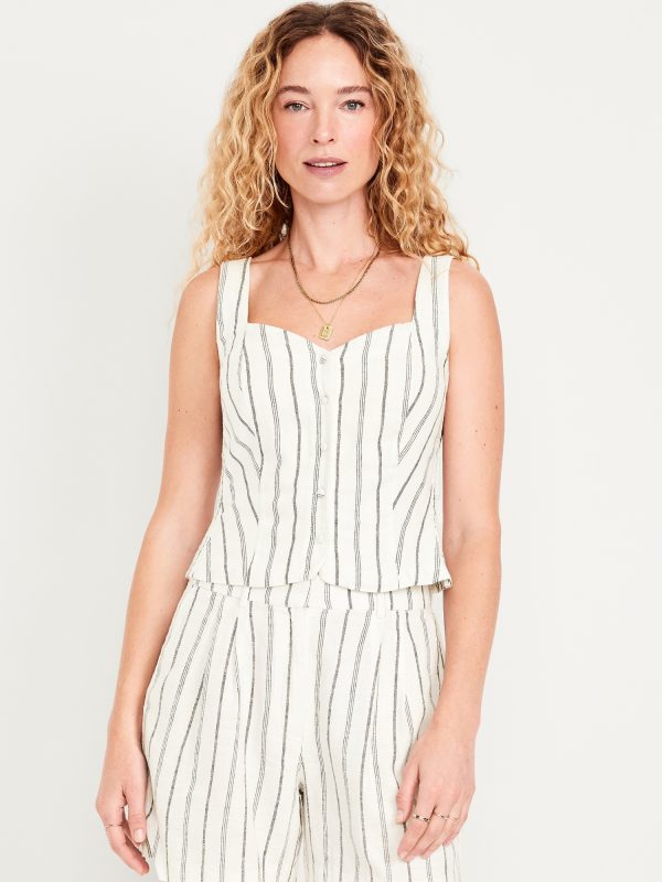 Button-Front Linen-Blend Vest: sweetheart neckline, wide straps, five-button front, smocked side panels, princess seams, #704063
