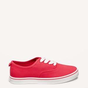 Canvas Lace-Up Sneakers for Girls: cushioned foot bed, contrasting rubber midsole, vulcanized outsole, lace-up front, pull tab at heel, #762472