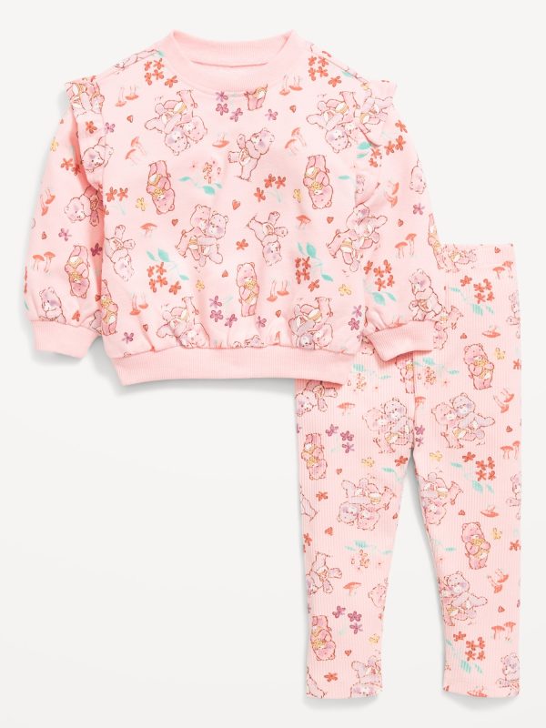Care Bears™ Sweatshirt and Leggings Set for Baby: crew neck, long sleeves, ruffle overlay along shoulders, drop shoulders, matching leggings, elasticized waistband, licensed graphic, Care Bears TM & © 2025 Those Characters From Cleveland. All Rights Reserved., #803649