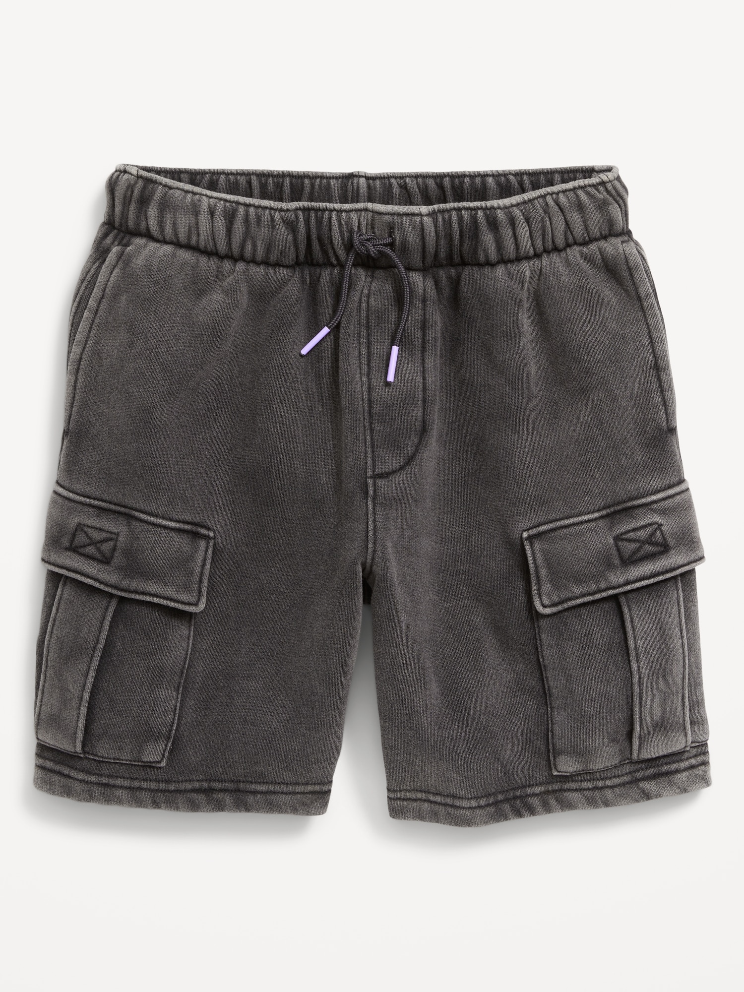 Cargo Fleece Shorts for Boys: elasticized waistband, functional drawstring, on-seam side pockets, flap adhesive secure-close cargo pockets, single welt pocket at back, #693213