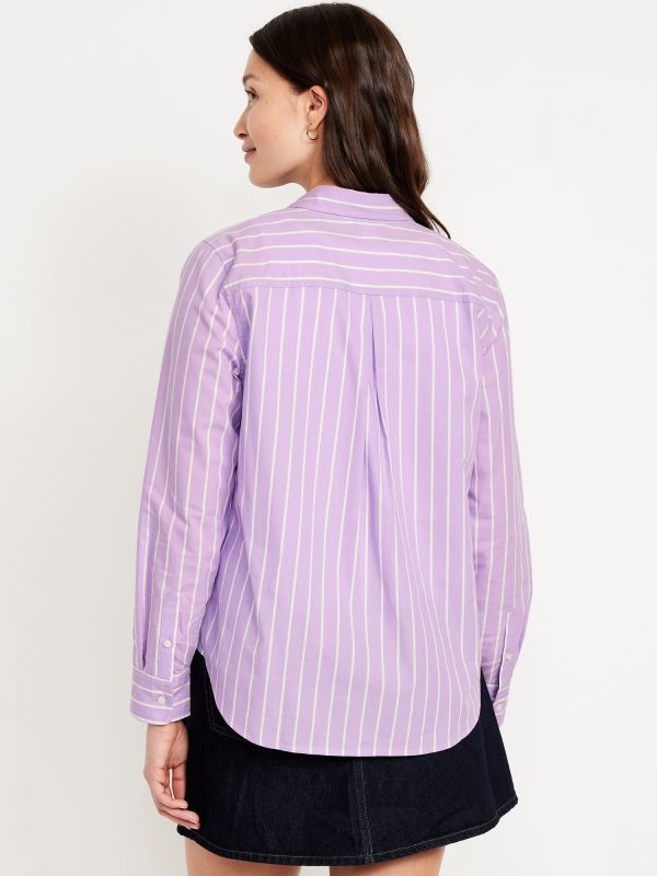 Classic Button-Down Shirt: spread collar, long sleeves, buttoned cuffs, button front, patch chest pocket, curved hem, fading, #576683