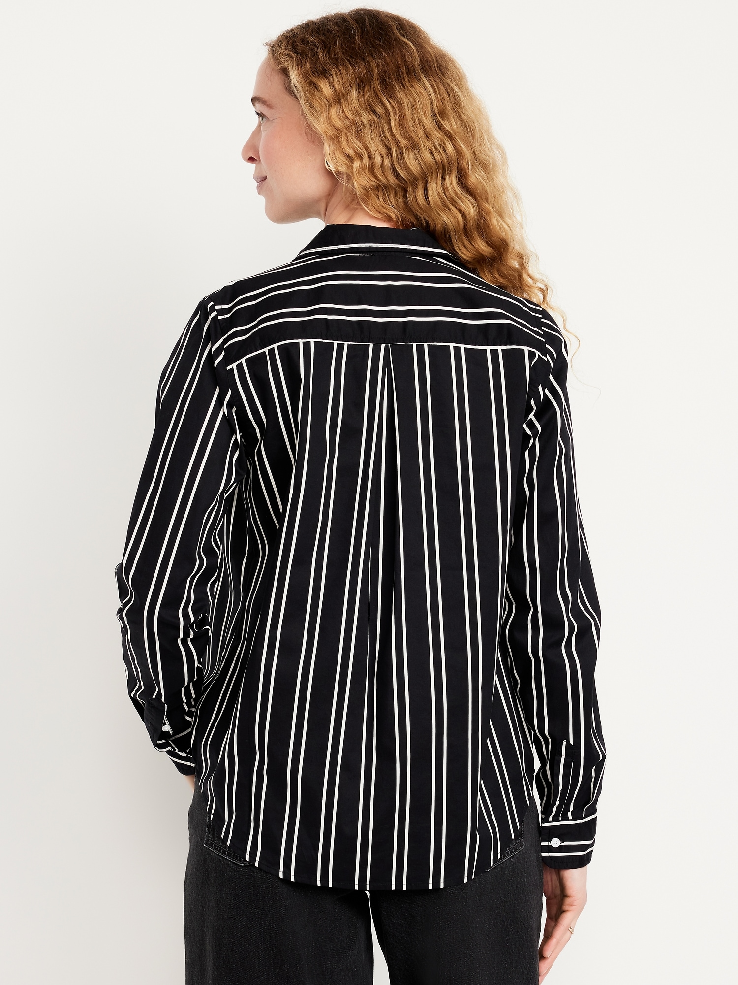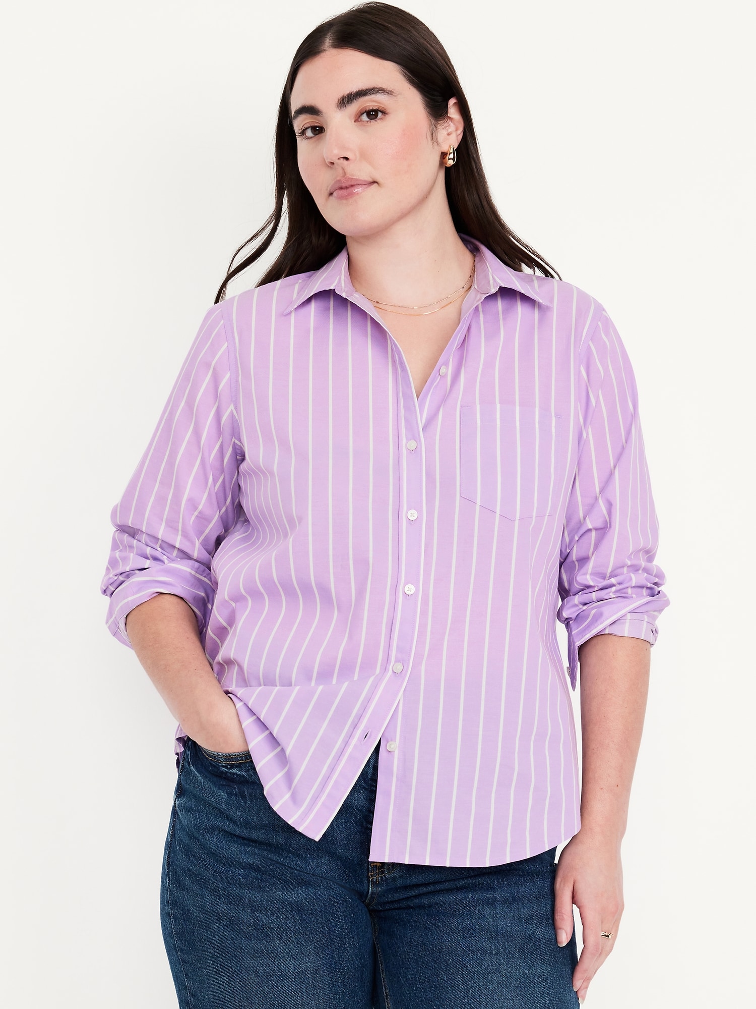 Classic Button-Down Shirt: spread collar, long sleeves, buttoned cuffs, button front, patch chest pocket, curved hem, fading, #576683