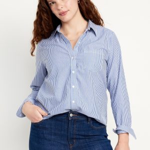 Classic Button-Down Shirt: spread collar, long sleeves, buttoned cuffs, button front, patch chest pocket, curved hem, fading, #576683