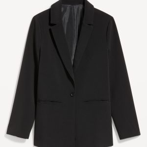 Classic Double-Weave Blazer: notched lapel, long sleeves, single-button front, welt pockets, fully lined, #766312