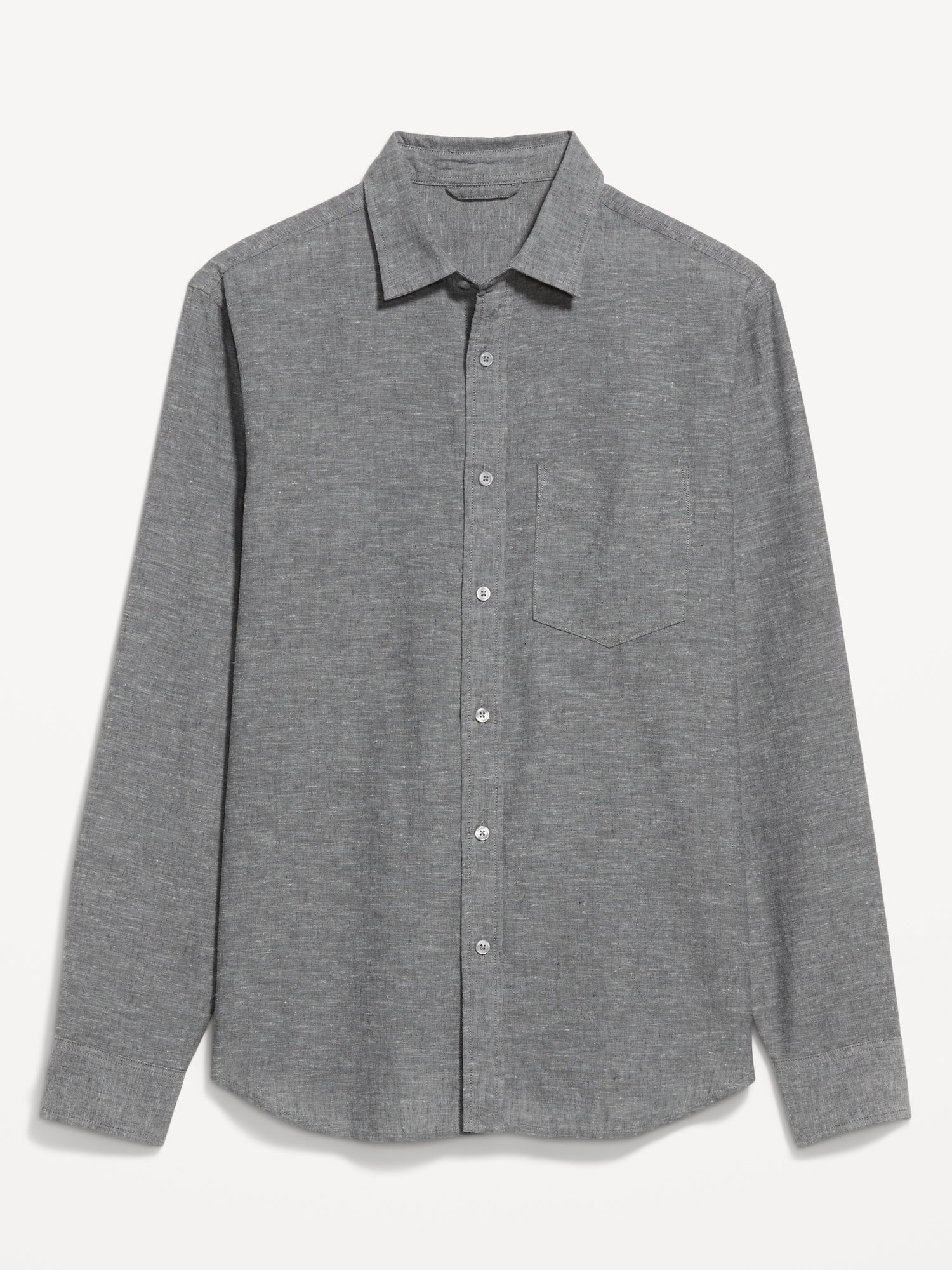 Classic Fit Linen-Blend Shirt: spread collar, long sleeves, buttoned cuffs, full-button front, patch chest pocket, #691163