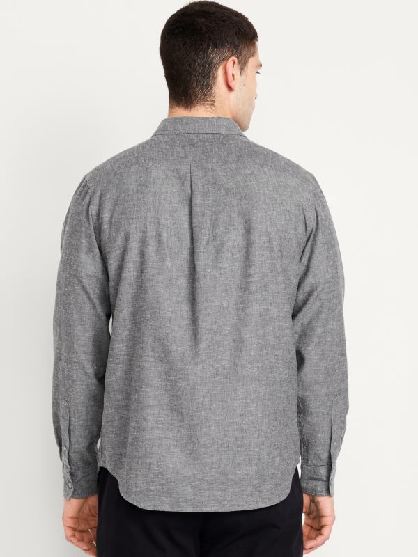 Classic Fit Linen-Blend Shirt: spread collar, long sleeves, buttoned cuffs, full-button front, patch chest pocket, #691163