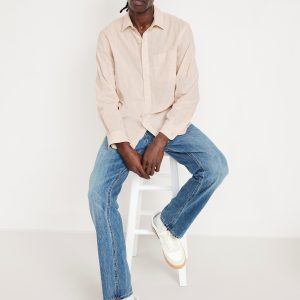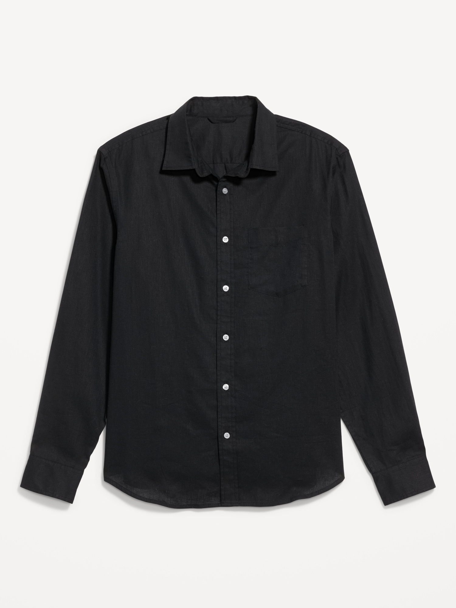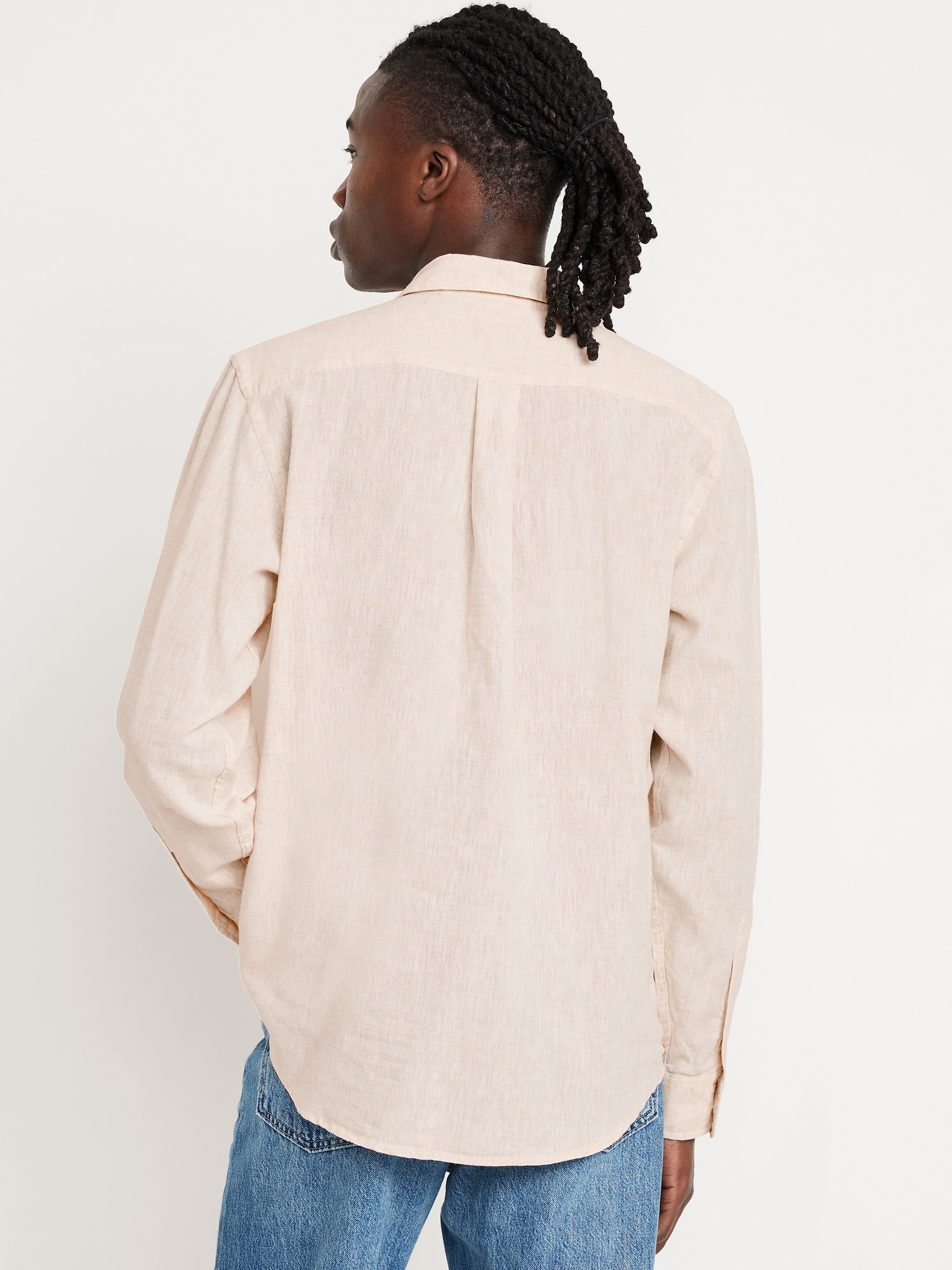 Classic Fit Linen-Blend Shirt: spread collar, long sleeves, buttoned cuffs, full-button front, patch chest pocket, #691163