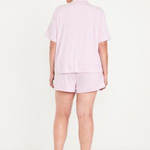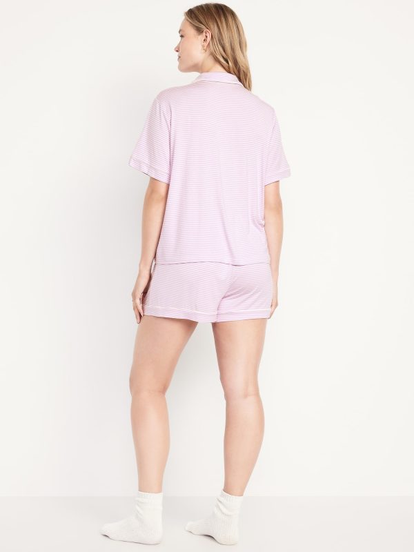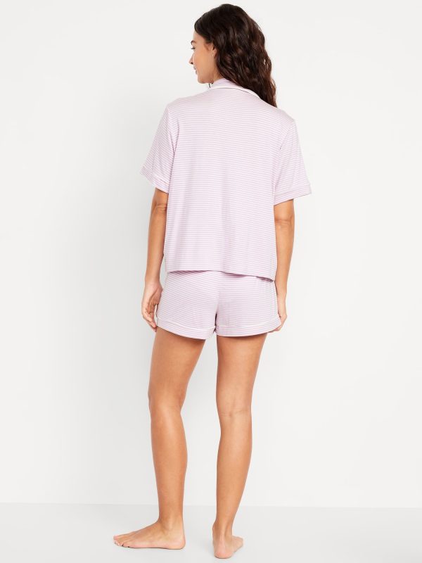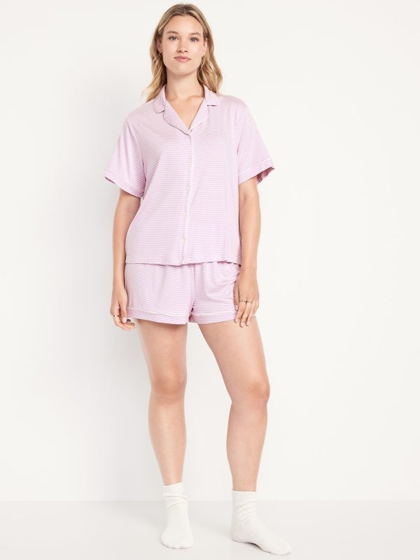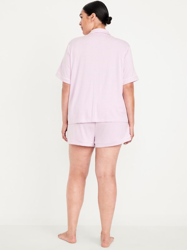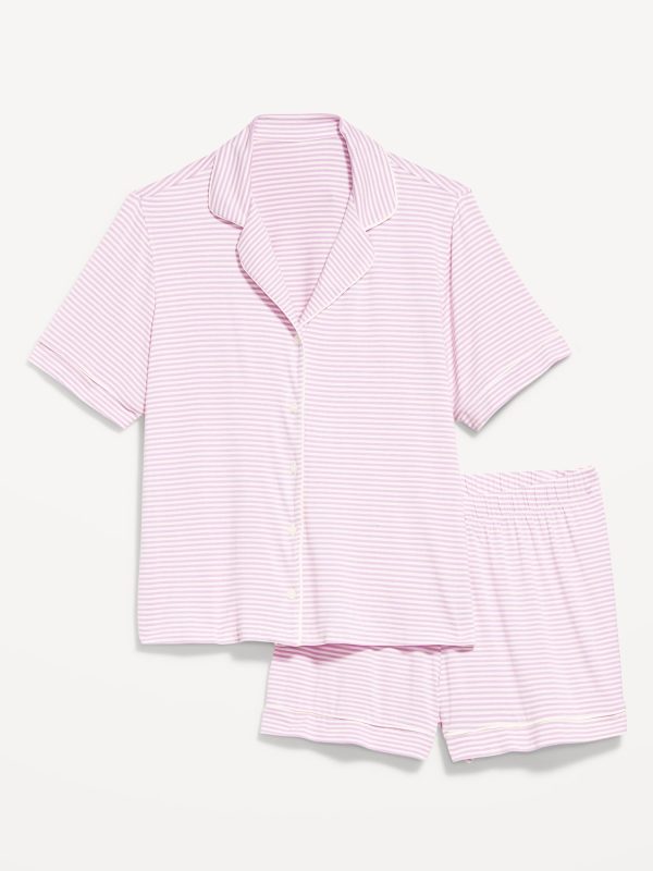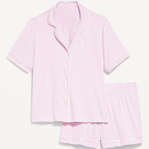 Classic Jersey Pajama Short Set: Knit jersey so unbelievably soft and stretchy.set includes pajama shirt and matching shorts, spread collar, short sleeves, full-button front, elastic-waist pull-on shorts, #422180